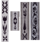The last chapter has 25 mainly modern patterns in plain tablet weave, starting with simple designs for square tablets and ending with a piece for hexagonal tablets resembling a pattern in the so-called Girdle of Rameses.